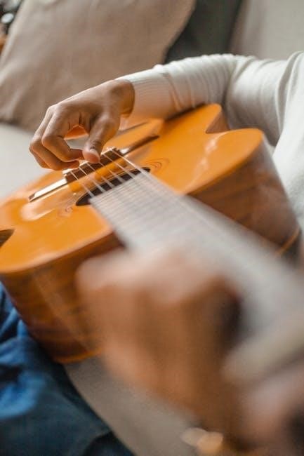 Another popular sequence is the I-VI-IV-V (G-Em-C-D)‚ providing a more melancholic and dynamic sound. Many PDF resources highlight variations of these progressions‚ incorporating seventh chords or passing chords for added color. The tuning’s resonance emphasizes the root and fifth‚ making these progressions particularly powerful.